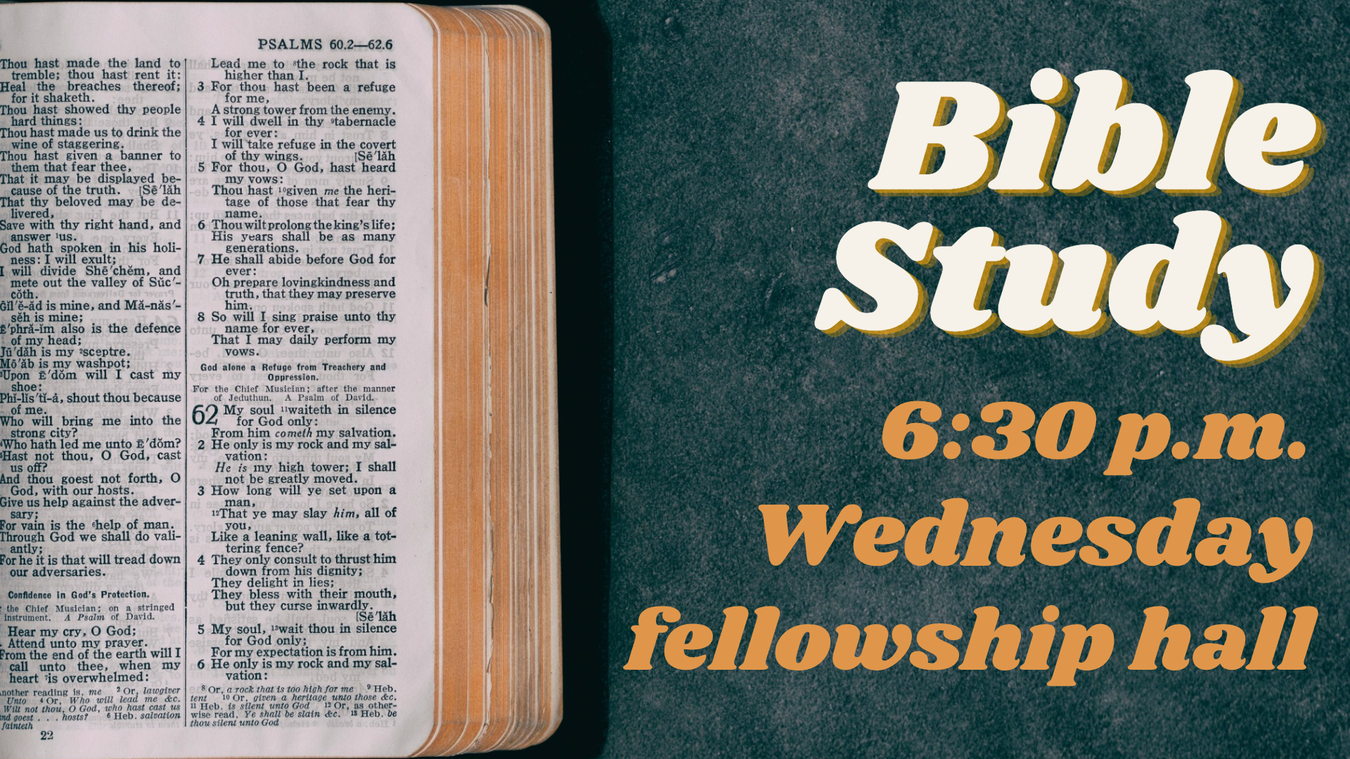 Wednesday | 6:30 p.m. | Fellowship Hall